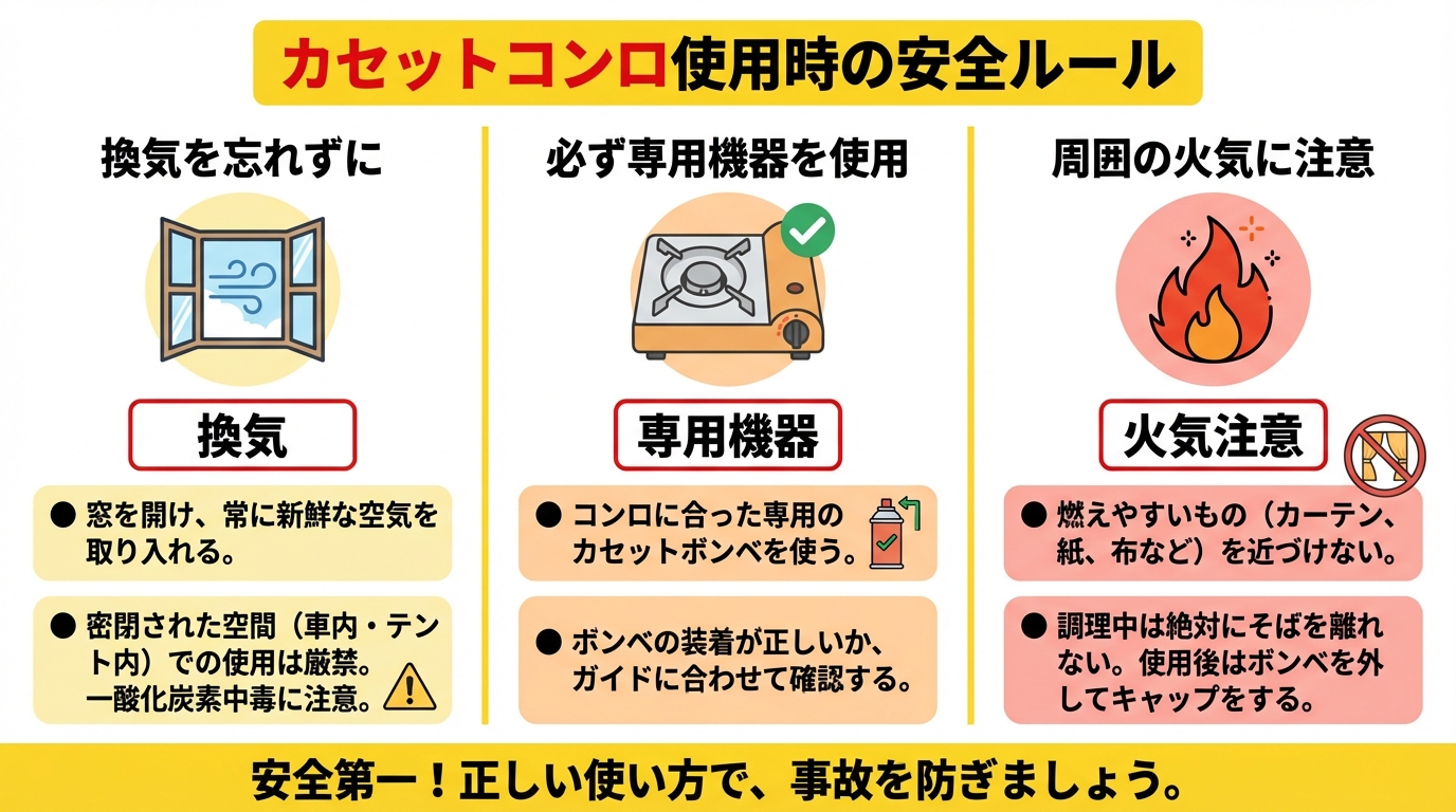 「寒くても、必ず窓を開けて換気をする」これがカセットコンロを使用する際の絶対条件です。