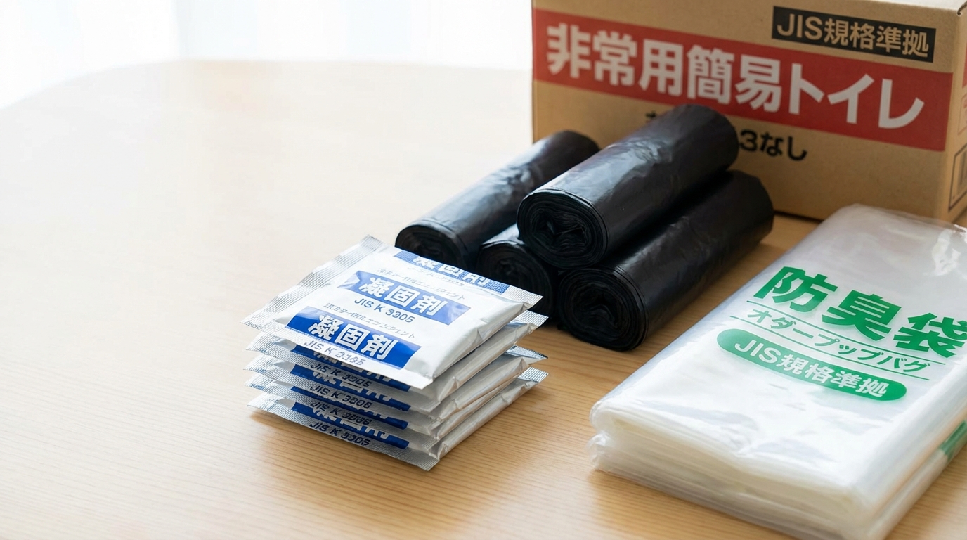 単なる黒いポリ袋では、時間の経過とともに強烈な臭いが漏れ出してきます。医療用レベルの防臭素材を使った袋(BOSなど)がセットになっているものか、別途防臭袋を購入してセットにしておくことを強く推奨します。